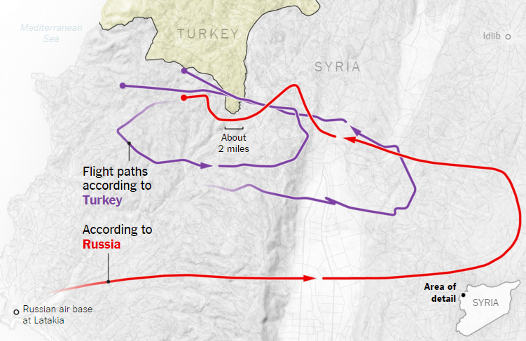 Der Vorfall werde ernste Konsequenzen für das türkisch-russische Verhältnis haben, drohte Putin. „Wir werden niemals dulden, dass solche Verbrechen wie das heutige begangen werden.“ Der russische Präsident sprach davon, die Türkei sei der russischen Luftwaffe „in den Rücken gefallen“, ein Schlag von hinten, „begangen von Helfershelfern von Terroristen“. Zum Zeitpunkt des Abschusses habe sich die russische Maschine vier Kilometer jenseits der Grenze auf syrischem Gebiet befunden, das könne man beweisen.